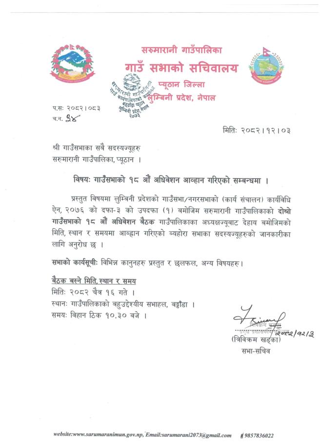 » गाउँसभाको १८ औं अधिवेशन आव्हान गरिएको सम्बन्धमा
