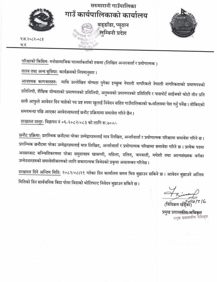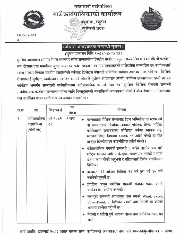 सेवा करारमा आवश्यकता सम्बन्धी सूचना ।।