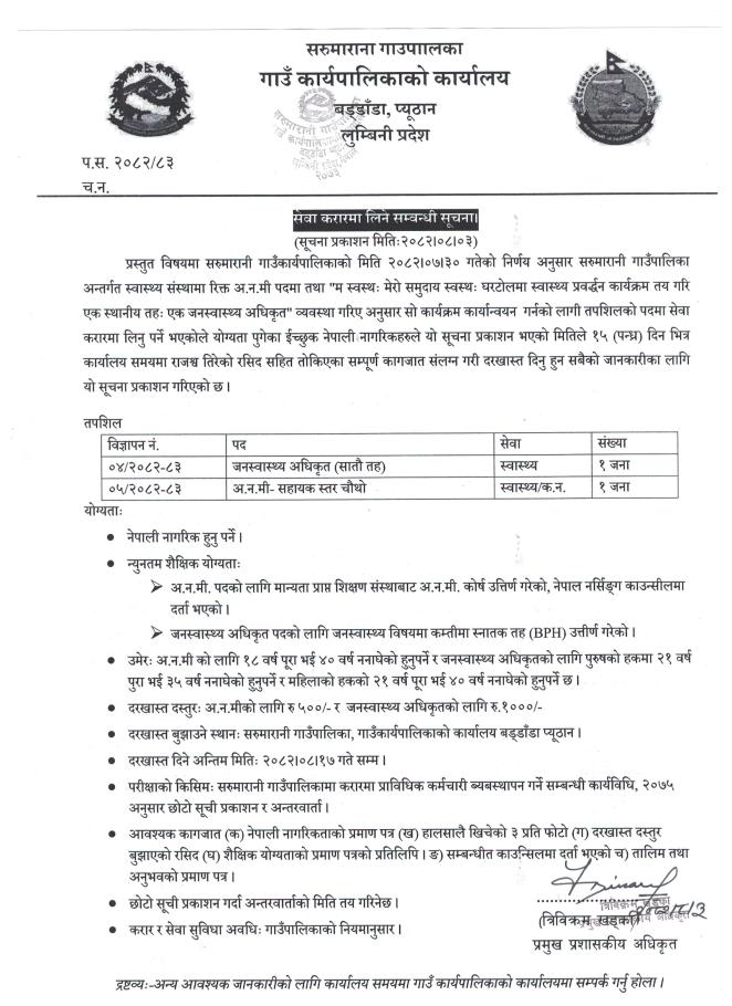 सेवा करारमा लिने सम्बन्धी सूचना ।।