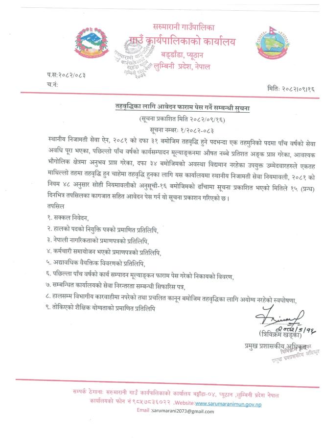 तहवृद्धिका लागि आवेदन फाराम पेश गर्ने सम्बन्धी सूचना ।।।