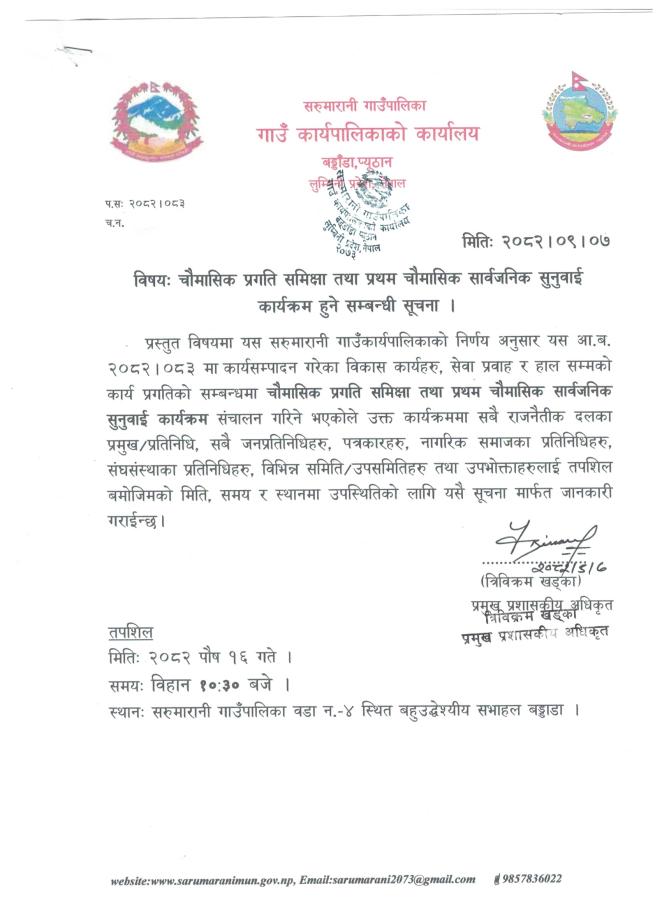 » प्रथम चौमासिक सार्वजनिक सुनुवाई कार्यक्रम हुने सम्बन्धी सूचना ।।