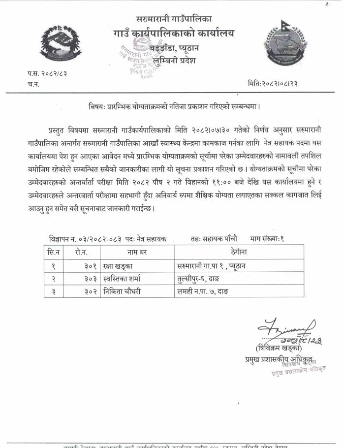 प्रारम्भिक याेग्यताक्रमकाे नतिजा प्रकाशन गरिएको सम्बन्धमा ।।